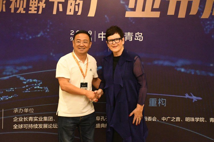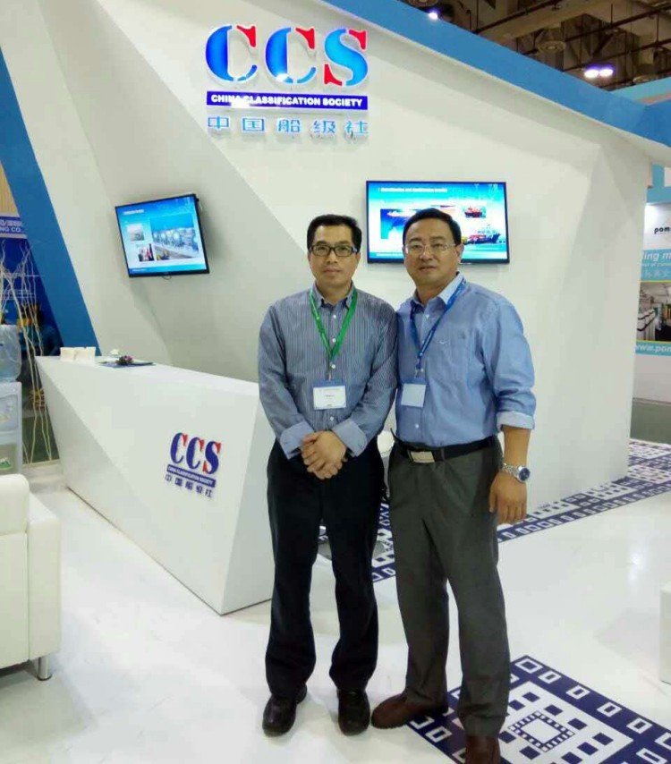 The chairman took a group photo with CCS classification society staff at the exhibition
